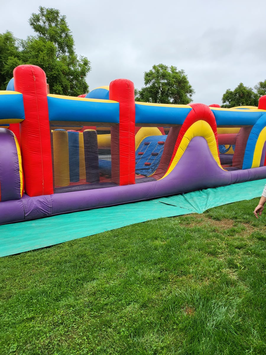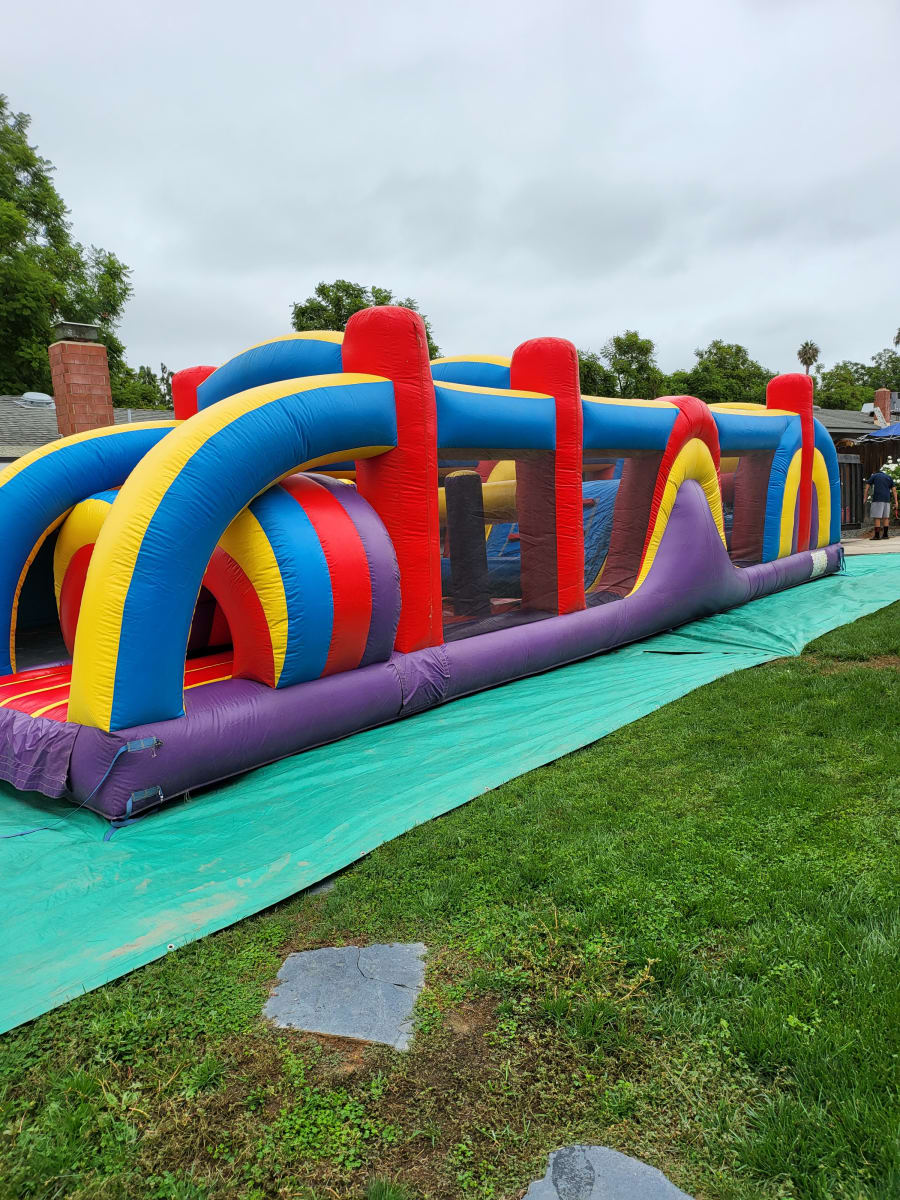 This is our 40ft colorful Obstacle Course inflatable structure it has a round front-loading obstacle entrance, taking participants through maneuvering pop-ups, over climbs and down the slides for exciting race from start to finish. The inflatable Obstacle Course then ends with a photo-finish pair of tunnels. Race your competition by crawling through tunnels, climbing the wall, running through the pylons and sliding your way down to the finish line.